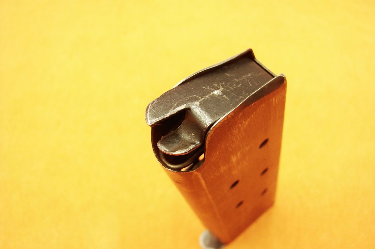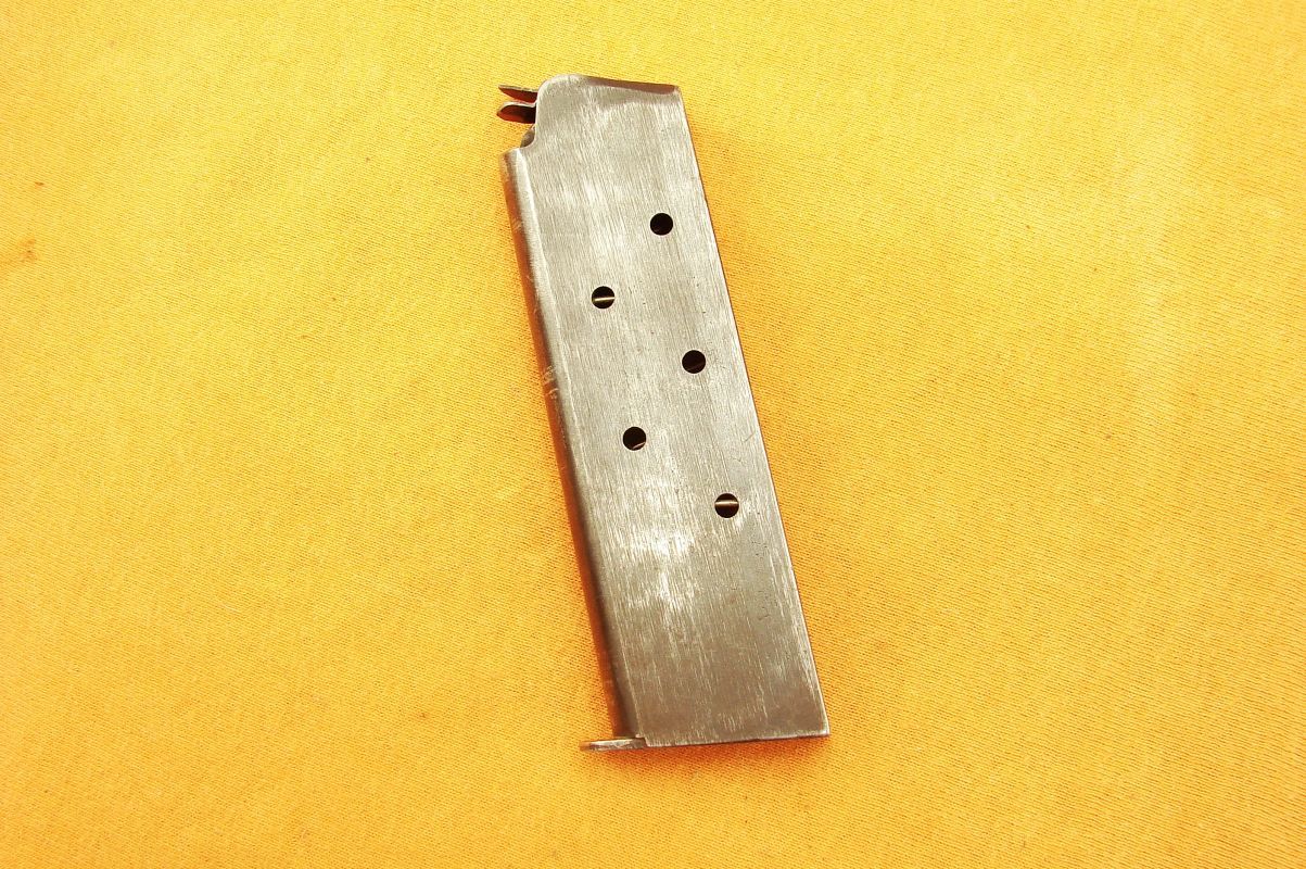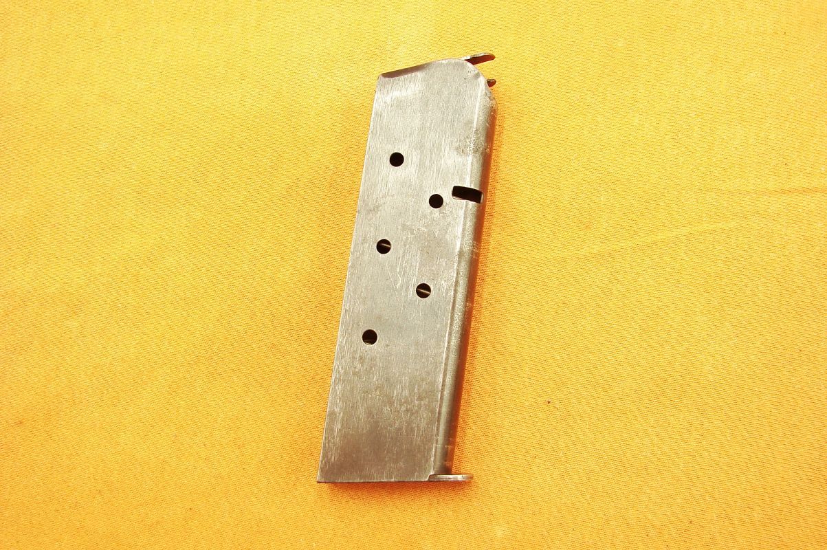 COLT 1911 A1 MAGAZINE MS Little WW2 Price: 115 $, approx 98.75 € COLT, MAGAZINES, PISTOL MAGAZINES GENUINE WW2 7 shot MAGAZINE for COLT 1911 A1 PISTOL. MARKED L (M.S. Little Mfg. Co., Hartford, Conn) on the BOTTOM. cal. .45 acp GOOD CONDITION PLEASE LOOK AT THE PICTURES! 100% ORIGINAL! NO MISTAKE ABOUT IT! IF YOU HAVE ANY QUESTIONS, PLEASE FEEL FREE TO E-MAIL ME. DU-62 Price: $115 Name (required) Email (required) Your message If you have not received an answer from me please, check your spam/junk box. Post Views: 49