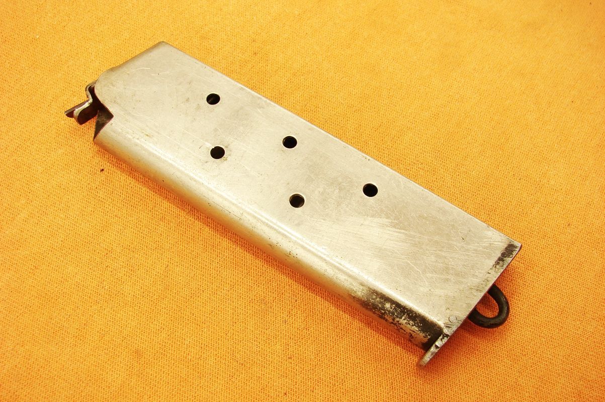 COLT M1914 KONGSBERG MAGAZINE WW2 Price: 150 $, approx 128.07 € COLT, MAGAZINES, PISTOL MAGAZINES GENUINE NORWEGIAN WW2 7 shot WAR TIME MAGAZINE for COLT M1914 Kongsberg PISTOL. cal. .45 acp GOOD CONDITION PLEASE LOOK AT THE PICTURES! 100% ORIGINAL! NO MISTAKE ABOUT IT! IF YOU HAVE ANY QUESTIONS, PLEASE FEEL FREE TO E-MAIL ME. DR-94 Price: $150 Name (required) Email (required) Your message If you have not received an answer from me please, check your spam/junk box. Post Views: 39