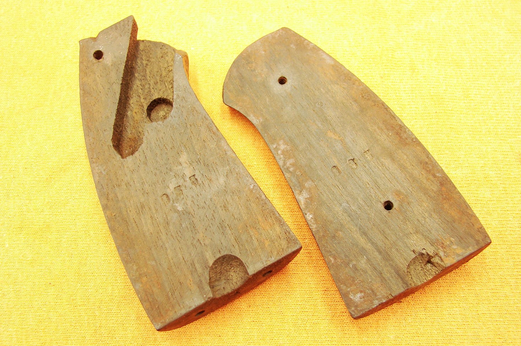 RAST GASSER 1898 GRIPS Price: 100 $, approx 85.62 € GRIPS, REVOLVER GRIPS GENUINE AUSTRIAN WOODEN GRIPS for Rast Gasser 1898 REVOLVER. cal. 8 mm Gasser (8.1×27 mm, 8.2×27.5 mm) GOOD CONDITION PLEASE LOOK AT THE PICTURES! 100% ORIGINAL! NO MISTAKE ABOUT IT! IF YOU HAVE ANY QUESTIONS, PLEASE FEEL FREE TO E-MAIL ME. EB-36 Price: $100 Name (required) Email (required) Your message If you have not received an answer from me please, check your spam/junk box. Post Views: 77